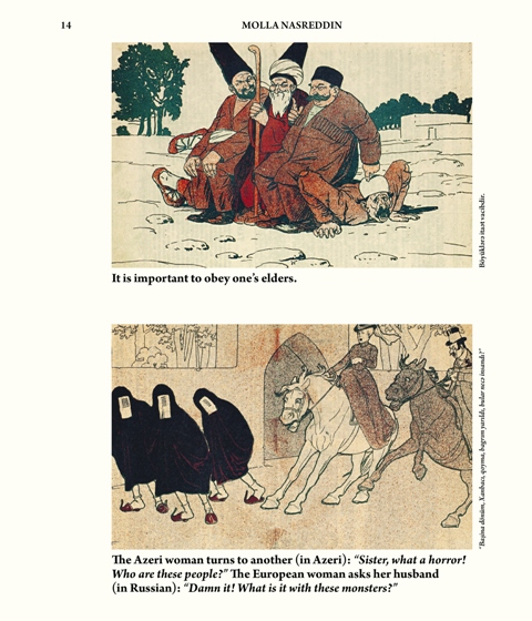 Όλα τα τεύχη επανεκδόθηκαν πρόσφατα από την Ακαδημία Επιστημών του Αζερμπαϊτζάν και κάθε επιβλητικός τόμος, από τους οκτώ συνολικά, έχει περίπου 700 σελίδες. Μετά από εκείνη την αποκάλυψη αρκετά χρόνια πριν, μεταφέροντας και φροντίζοντας τους τόμους αυτούς καθώς ταξιδεύαμε μεταξύ Βρυξελλών, Μόσχας, Νέας Υόρκης, Βερολίνου και Βαρσοβίας, το περιοδικό αυτό έχει γυμνάσει όχι μόνο τους μυς, αλλά και τη σκέψη μας. Παλέψαμε με το Molla Nasreddin: όπως κάθε αντικείμενο έντονου ενδιαφέροντος, μας απωθεί και μας έλκει ταυτόχρονα. Σπάνια όμως αγκαλιάζει κανείς τις αντιθέσεις του, όπως κάναμε εμείς με αυτόν τον τόμο: ξοδεύοντας χρόνια για τη μετάφραση, χρηματοδότηση και έκδοση ενός ιστορικού περιοδικού, με το οποίο συχνά διαφωνούμε. Αποτελώντας υπέρμαχο των κοσμικών, δυτικών αξιών, το εβδομαδιαίο αυτό περιοδικό είναι υπό μία έννοια ένα αντίστροφο σύμβολο των όσων εμείς πρεσβεύουμε. Ενώ το Molla Nasreddin είναι κοσμικό και φιλοδυτικό, εμείς έχουμε την τάση να ρέπουμε προς το μυστικισμό και να βλέπουμε με επιφύλαξη τη μαζική εισαγωγή της δυτικής νεωτερικότητας. Όπως όμως συμβαίνει με τα καλύτερα δείγματα πολιτισμικής παραγωγής, το Molla Nasreddin διακρίνεται από την πολυφωνία του, από την κεφάτη αμφισημία του και από το γεγονός ότι αγκαλιάζει ανεπιφύλακτα την όσμωση που γεννιέται από τη συνύπαρξη διαφορετικών γλωσσών, ιδεών και ταυτοτήτων. Η πανκαυκάσια ταυτότητα του περιοδικού (με τα περιοδεύοντα γραφεία μεταξύ Τιφλίδας, Μπακού και Ταμπρίζ) η χρήση τριών διαφορετικών αλφαβήτων και του χιούμορ ως αφοπλιστικού μέσου άσκησης κριτικής, συνιστούν ένα τρίπτυχο το οποίο εμείς, παρά τις επιφυλάξεις μας για κάποιες ακραίες θέσεις, επικροτούμε απερίφραστα.