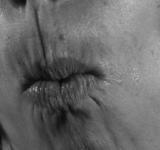 Silence is also brought forth, not only through the fact that the mouth emits no sound, but through an intimate and plain scale which begets a proximity to the ambiguous character of presence and solitude that inhabits the work. The dichotomies presented (silence/sound, tenderness/violence, image in motion/photography) exhibit an extreme coherence. And something that could be qualified as ambiguous reveals one of her work’s greatest qualities: the original dimension of visual poetry.
