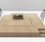 Visitors will be invited to participate, comment and analyze the work by stepping up to the stage and writing their comments about the sculpture on the floor.